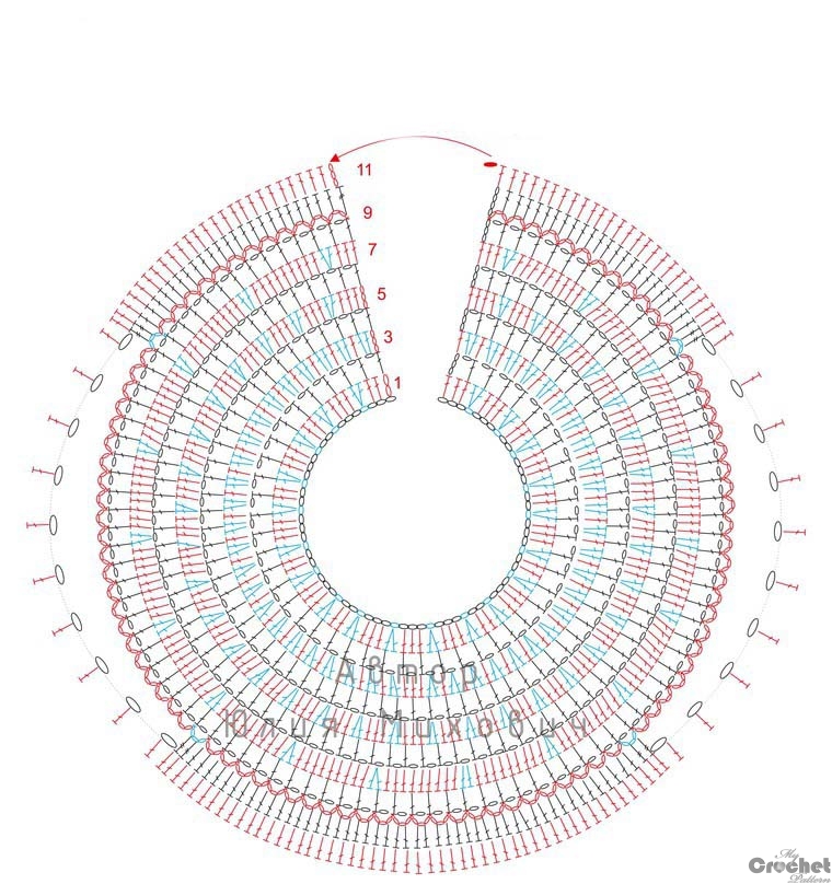 - Yarn: 50 g – for yoke, 110 g – for skirt