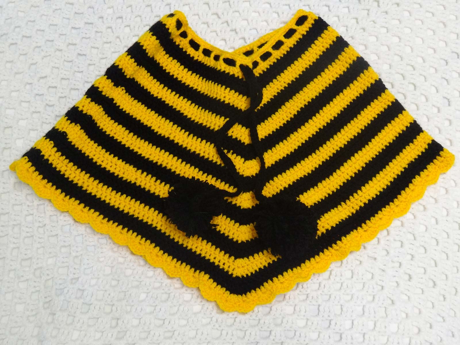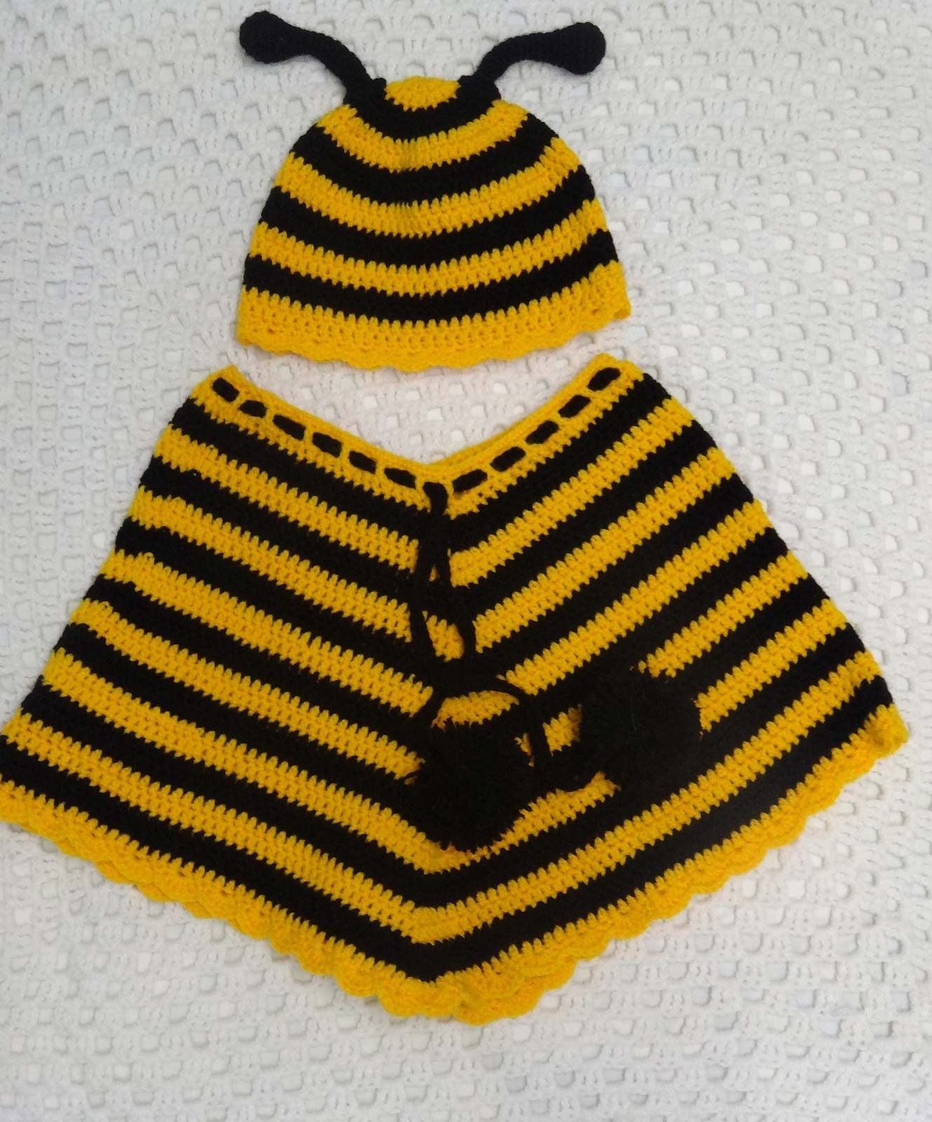 Awesome handmade Bee Beanie & Poncho is a great gift to a little kid.