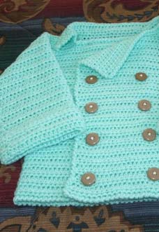 Stylish handmade Infant’s Double Breasted Sweater Crochet Pattern is a great gift to a little girl.