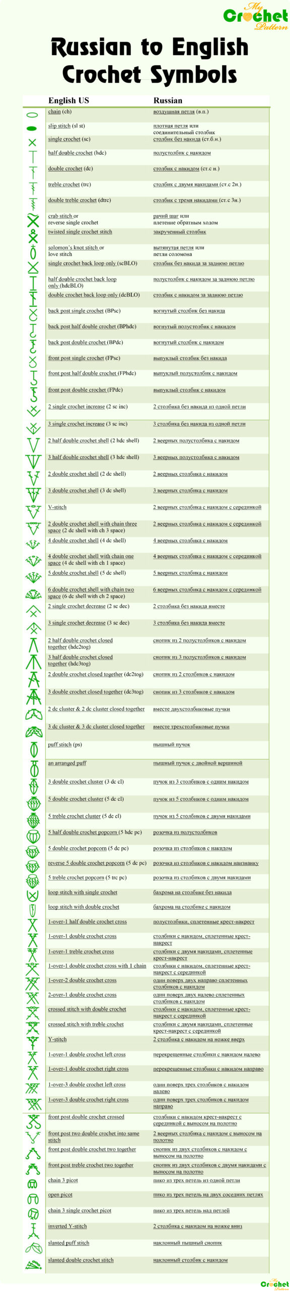 In Russian crocheting, not many terms that are used. But, even in spite of this, we have made a small chart for you; here, you can see how we translate Russian crochet abbreviations to English.