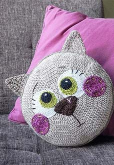 Awesome handmade Cutie Cat Pillow is a great gift to a kid or to a young lady.