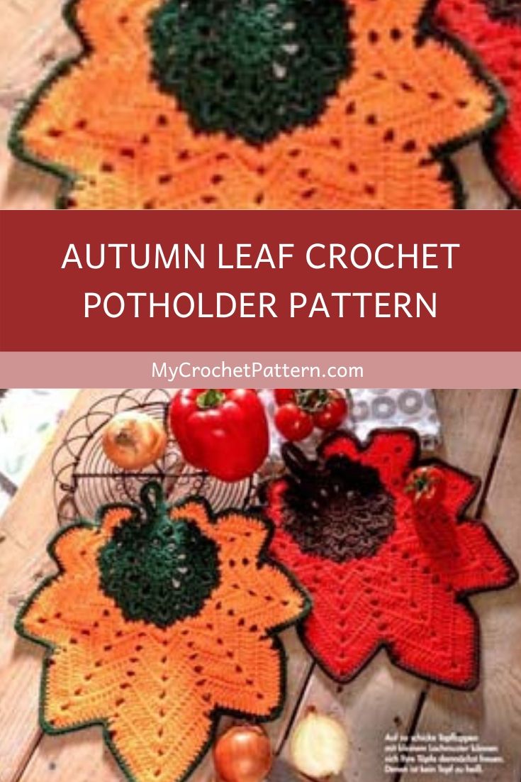 Awesome handmade Autumn leaf crochet potholder pattern is a great gift to a close person.
