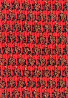 Row 4 (forward): tss, tss with 2 ch for a tes, *pull off stitch, tss with 2 ch for a tes, rep from * to the end, tss.