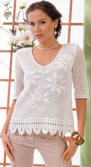 Stylish handmade Crochet Filet Blouse Patten is a great gift to a woman.