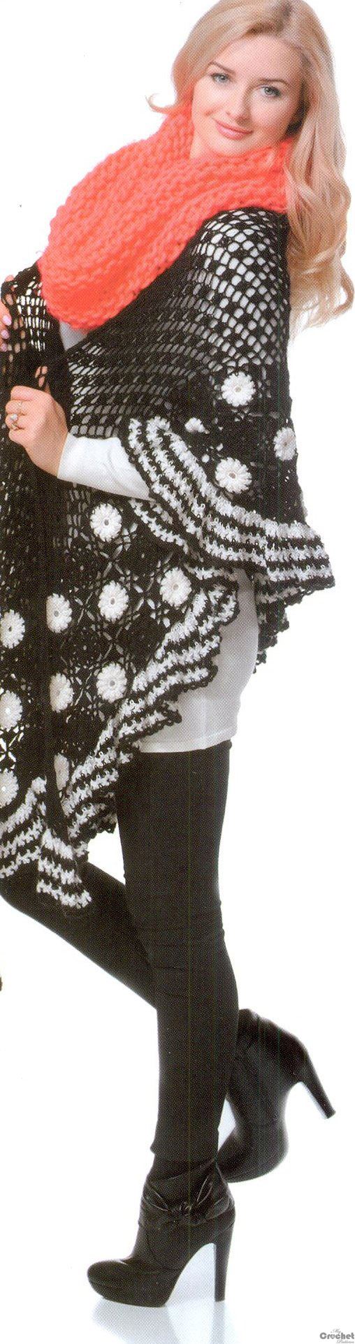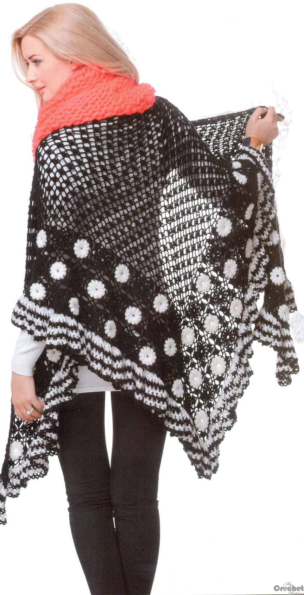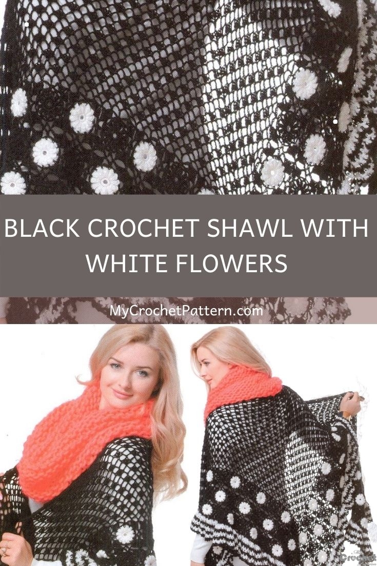 Stylish handmade Black Crochet Shawl With white Flowers is a great gift to a woman.