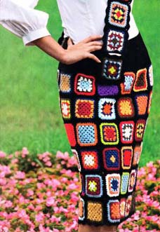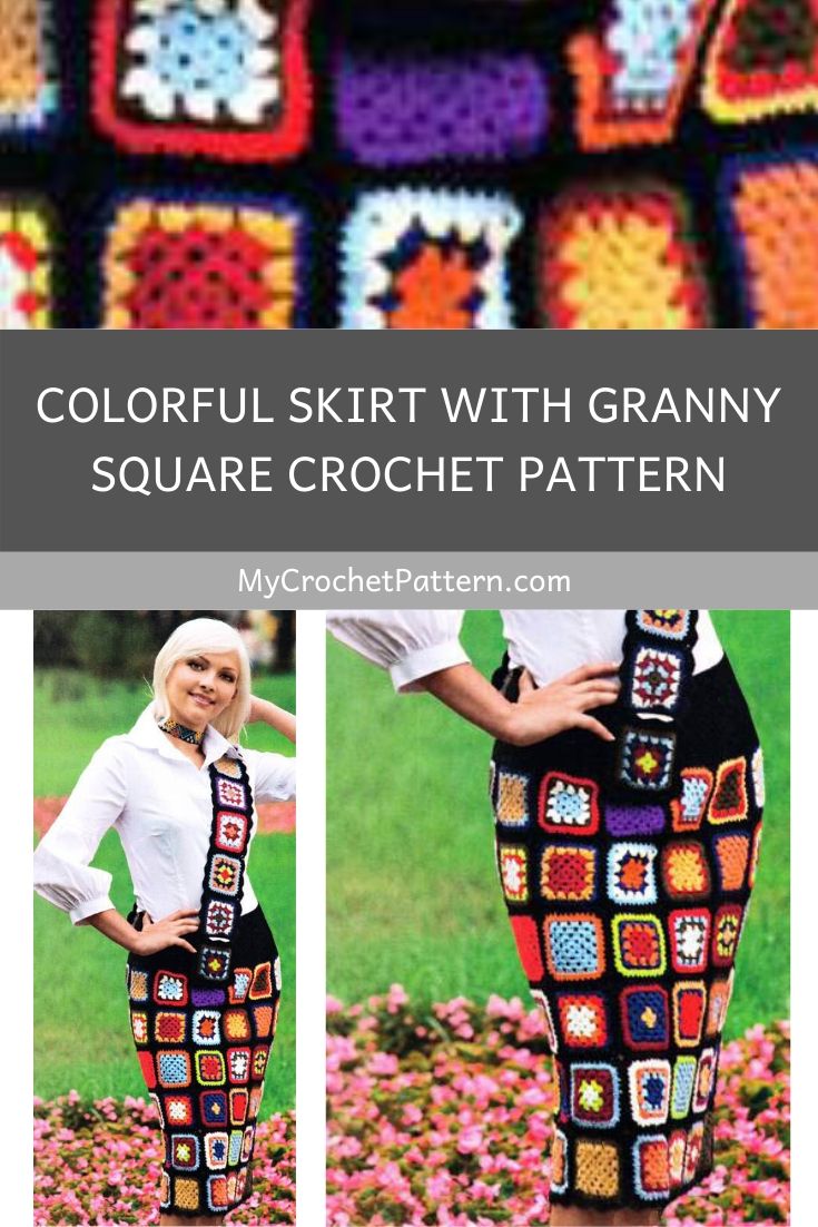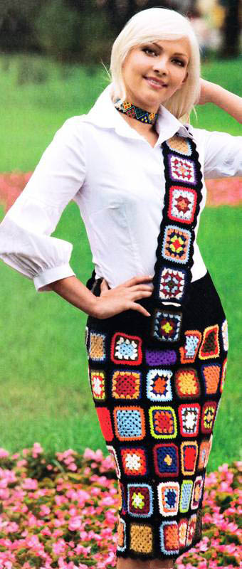 Colorful skirt with granny square crochet pattern