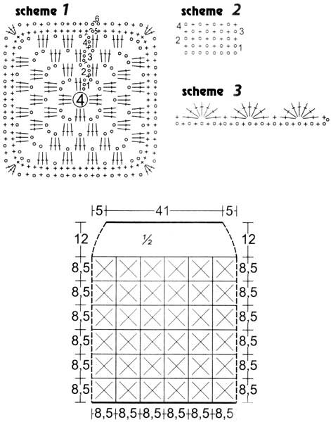 For the belt along the top of the skirt, crochet 25 rows of the pattern according to scheme 2 in the forward and reverse direction.